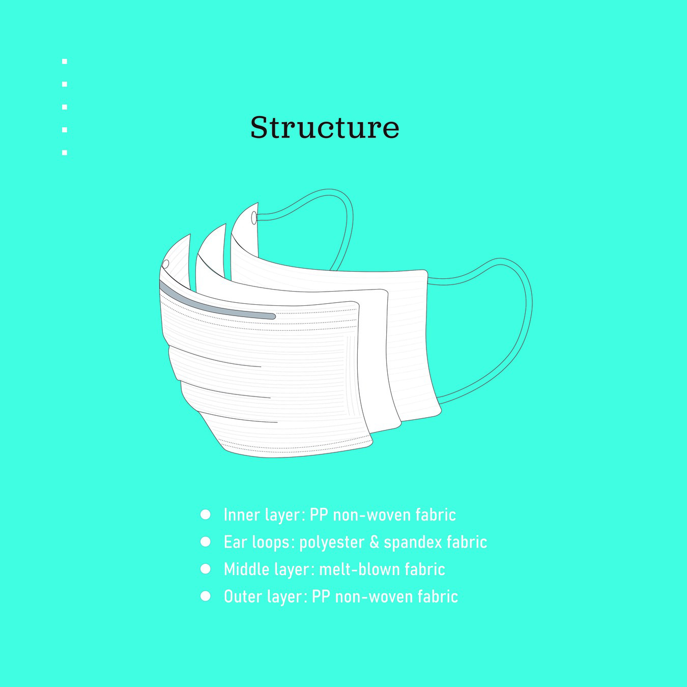consisting of 50 disposable face masks. Size: 6.9" x 3.7". Simple Ear Loop Design for Easier Wear. Non-woven fabric & melt blown fabric material.