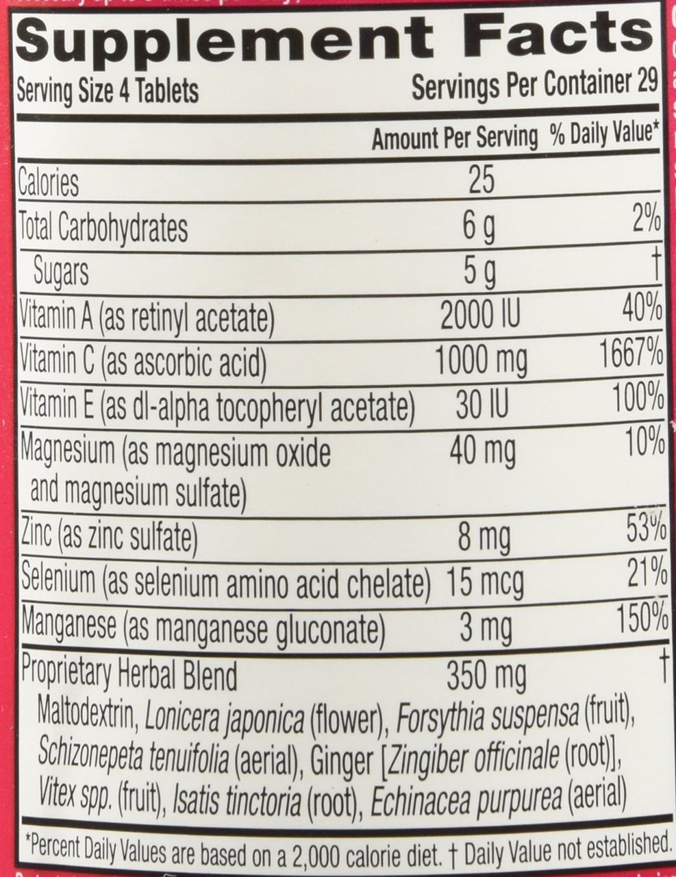 Airborne® Chewables are packed with key vitamins to help support your immune health. Four tablets deliver 1,000 milligrams of Vitamin C and high quantities of other antioxidants. Vitamin C is an antioxidant that goes to work on a cellular level to adjust high levels of stress hormones and enhance the function of immune cells throughout your body. Vitamin E inactivates free radicals that can harm cells. Vitamin A, a phytonutrient that works as an antioxidant, promotes immune health and protects DNA.