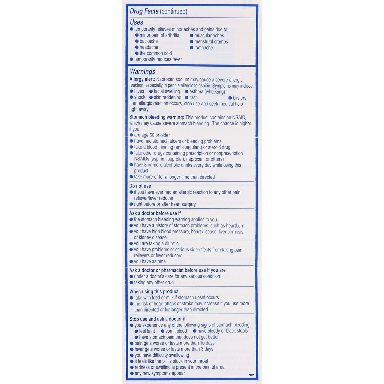 Aleve belongs to a class of medications known as non-steroidal anti-inflammatory drugs (NSAIDs); however, it is not indicated as an anti-inflammatory. If you are needing an anti-inflammatory, it may be best to ask your doctor or pharmacist to suggest the right medication for you.