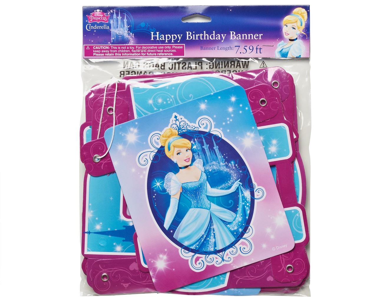 Give your little princess the bibbity-bobbity-boo-tiful birthday she deserves! Hinged banner measures 7.59 feet across and includes strings for easy hanging. Use outdoors to bring attention to the birthday location or indoors to complement your Cinderella-themed party decor.