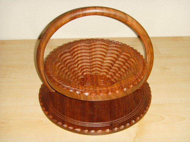 * It Size 10" Round and 1 Compartments* It is made out of one piece of rose wood.* It is all hand made and hand-carved.* It's a long time useable.* The collapsible Baskets Look beautiful.* Imported made in Bangladesh.* It's no fear of breaking and rot.* Great For You Or A Gift* Perfect For The Collector!* It also makes a perfect gift for different occasions or for someone who has everything.* Once you lift the handle from one side, you can use it for fruits, candies, nuts, potpourie, jewelry, decorative piece.* Using a scroll saw, the artist starts cutting from the middle in a continuous cut, the same way you peel an orange.* It is a spiral cut on a 5 to 7-degree an angle, and that is how one layer locks on top of the other.* You can see it clearly on the fruit shape as well but because of the angle, try not to flip it upside down unless you put your hand underneath.* All Hand Carved Collapsible Baskets Are First Class. No Irregulars!* This is an Angel licensed Exclusive item that cannot be found anywhere else.