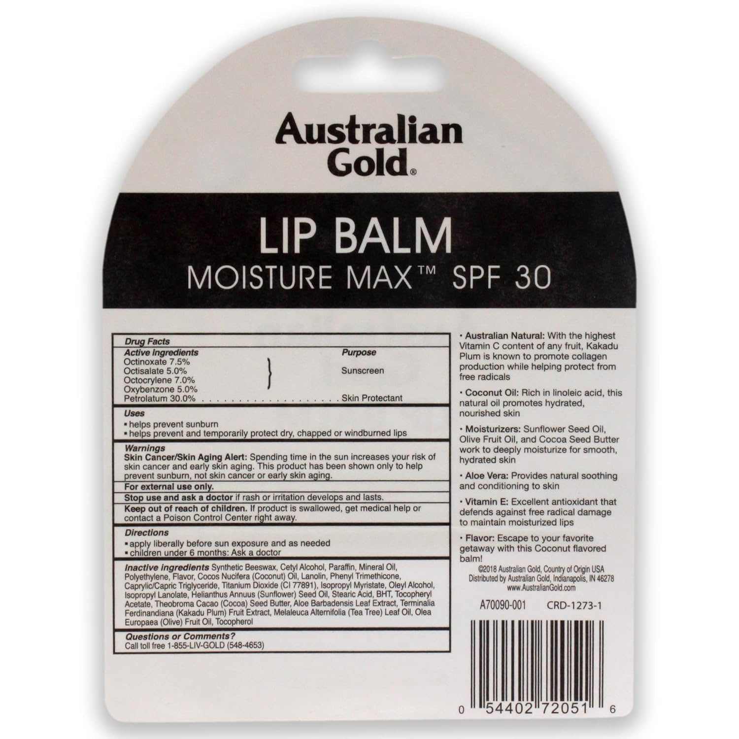 helps prevent sunburn, coconut flavor. With anti-oxidant rich Cacadu Plum.