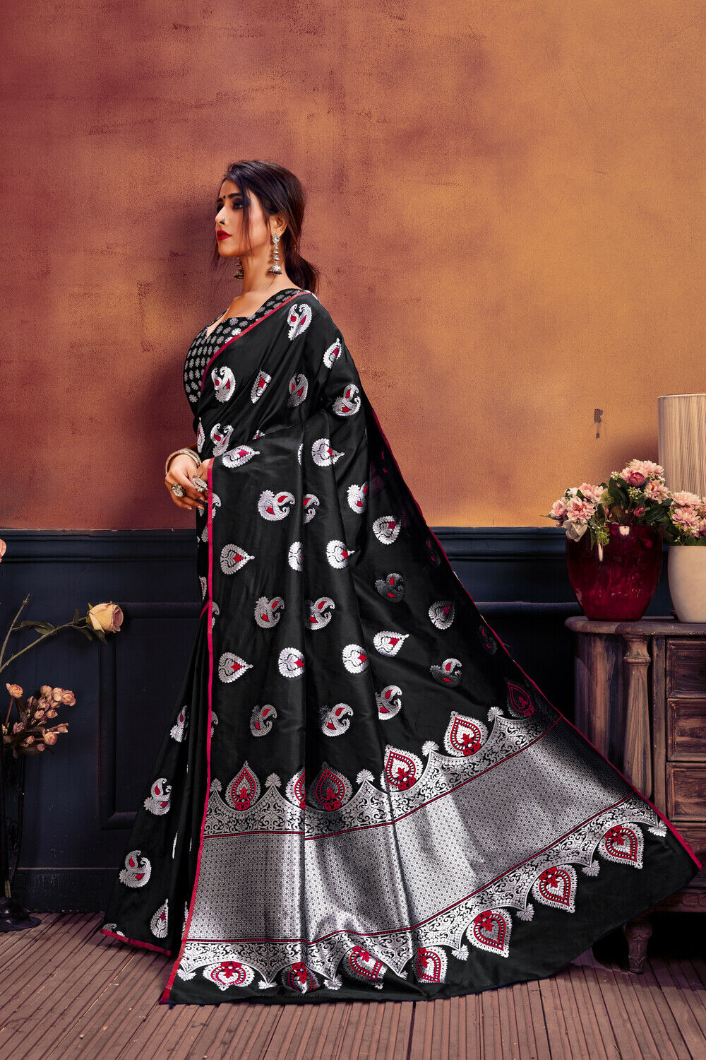Banarasi Saree Indian Silk Designer Jacquard Sari Woven Blouse Ethnic Wedding