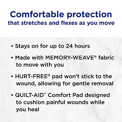 Band-Aid Brand Flexible Fabric Adhesive Bandages are designed for comfort and flexibility. They're made with Memory-Weave fabric that moves with you, so the bandage stays in place throughout the day to cover and protect minor scrapes and cuts. Made to fit over most wounds, the full-width Quiltvent pad has air channels that wick away blood to help keep wounds clean and provide superior breathability. The nonstick pad makes for gentle removal. This package contains 100 sterile bandages, each measuring 1" x 3".Product Features: