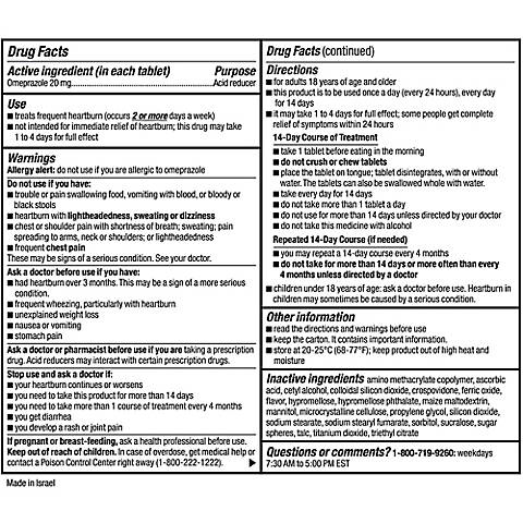 This acid reducer is FDA-approved to treat frequent heartburn that occurs 2 or more days per week. Omeprazole deactivates acid-producing pumps in the stomach lining to inhibit acid production at the source. This product is not intended for immediate relief of heartburn; it may take 1 to 4 days for full effect.Product Features: