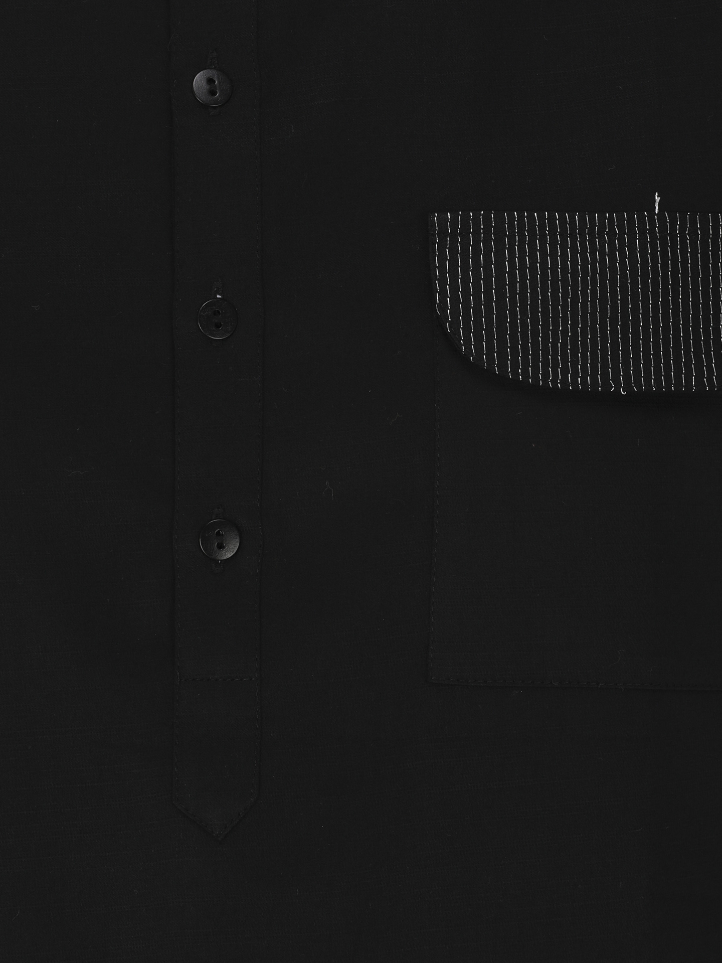 Black cotton slim fit short kurta with dual side in-seam pockets. this kurta useing very comfortable. made in bangladesh.