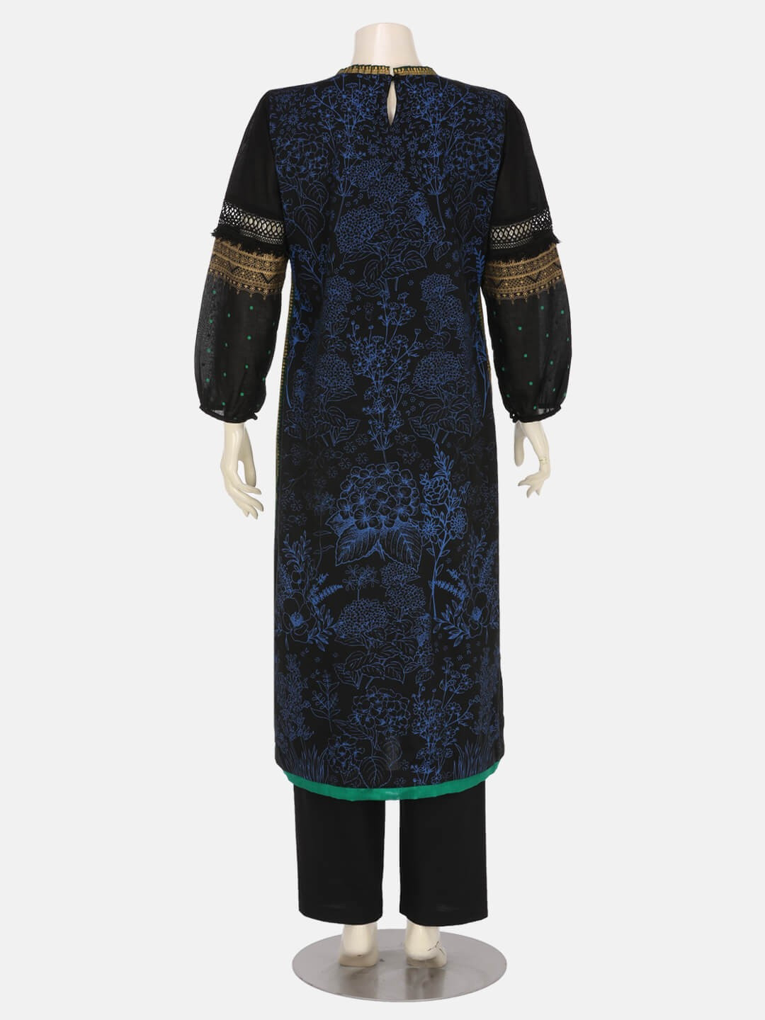 Black Printed and Embroidered Viscose-Cotton Shalwar Kameez Set