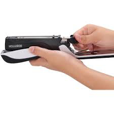 Paperwork can be a hassle, but stapling it shouldn't be. With the Bostitch Spring-Powered Premium Desktop Stapler's One-Finger™ spring-powered technology by PaperPro, experience fast and easy, jam-free stapling when you need it most at school, work, or the home office. 80 percent easier than standard staplers, all it takes is the press of a finger to fasten up to 25 sheets. Sleek and durable, the die-cast metal housing delivers long-lasting performance. With an ergonomic design that positions perfectly in the palm of your hand, comfortably staple without missing a sheet. Opens for bulletin board tacking and craft use. Full strip (210) staple capacity; uses standard staples. For optimal performance, use Bostitch Premium Standard Staples (1901). Three-Year Limited Warranty.
