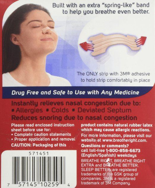 If you suffer from nighttime nasal congestion, Breathe Right nasal strips are drug-free and clinically proven to instantly open nasal passages. Breathe Right nasal strips help lift your nasal passages, open your nose, and improve airflow the minute you put them on. Breathe Right nasal strips open airways up to 38% more than cold medicines alone.* That's why millions of people around the world use Breathe Right nasal strips to breathe better so they can sleep and feel better.