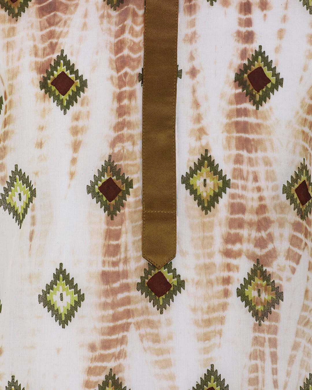 Brown Tie-Dyed and Appliqued Addi Cotton Panjabi