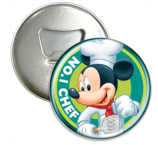 Button Magnet With Bottle Opener Mickey Mouse No 1 Chef Mikey Mouse Color printed on Button top