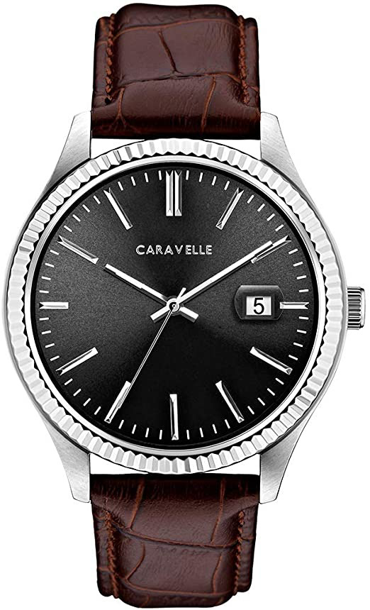 Caravelle Men's Brown Leather Strap Watch with Grey Dial