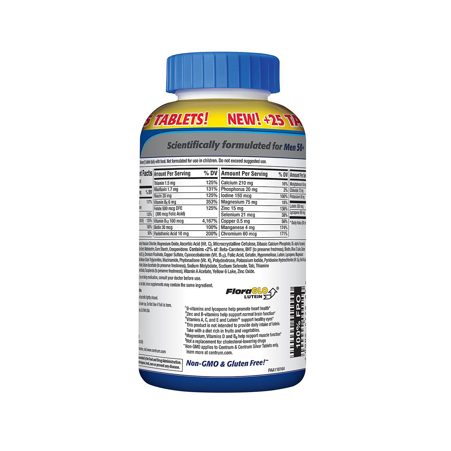 Many men use multivitamins on a daily basis to maintain optimal levels of the body's essential vitamins and minerals. Centrum® Silver Men Multivitamin/Multimineral Supplement Tablet, Vitamin D3, Age 50 and Older (250 ct.) does exactly that, and more. With a special emphasis on vitamin D, this men's multivitamin is formulated to keep you operating at your best.