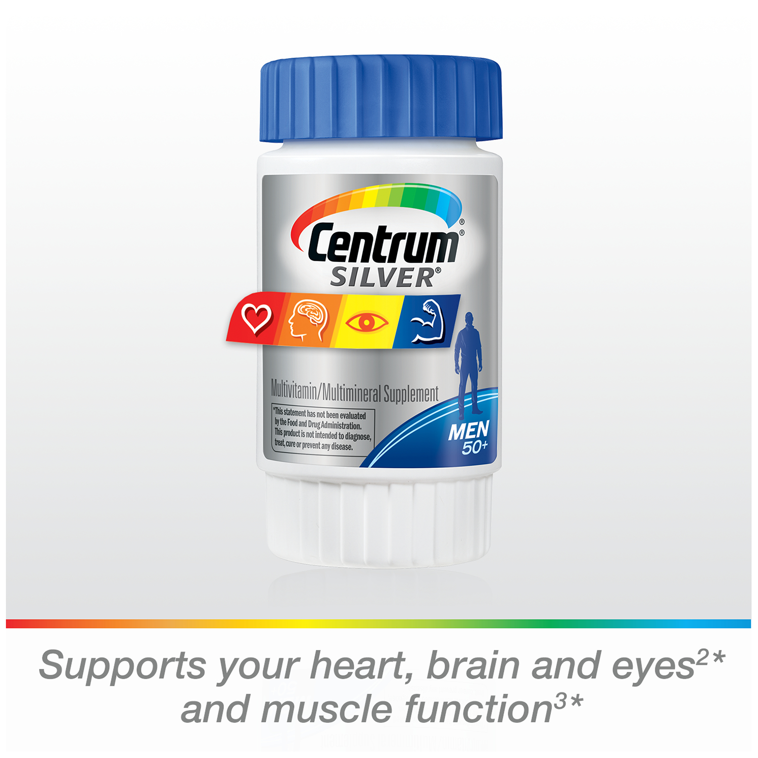 This men's vitamin is verified non-GMO and gluten-free to appeal to a variety of dietary preferences. Centrum Silver men's multivitamin tablets feature a smooth coating that makes them easy to swallow. Simply take one of these men's vitamins daily to replenish your body with essential vitamins and minerals that support your energy, immune system, and metabolism. Multivitamins are part of an overall healthy lifestyle and can help adults get the recommended amount of key vitamins and minerals. Feed your cells, fuel your life with Centrum, the #1 doctor and pharmacist recommended brand.