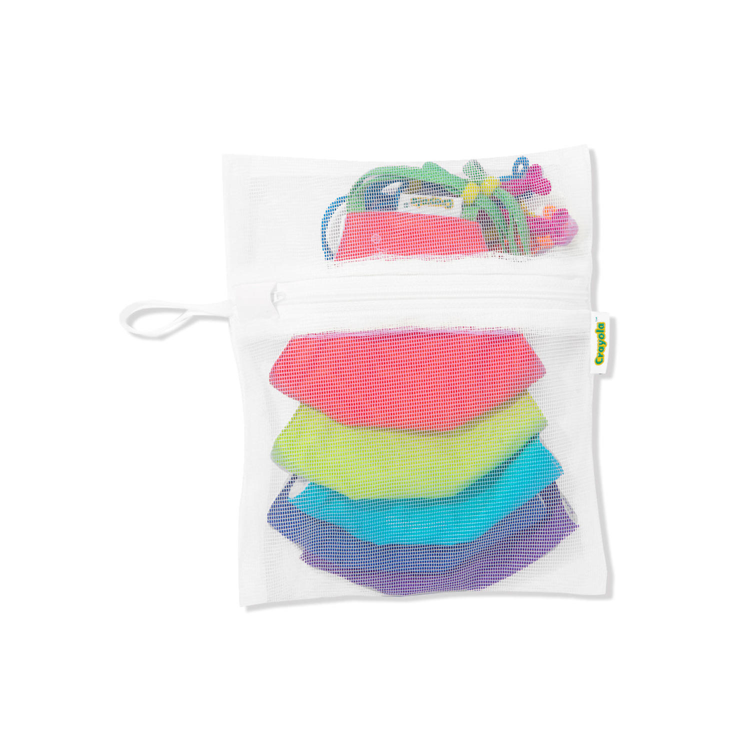 Our Crayola™ Cool Colors, non-medical mask packs come with a 5-mask system featuring unique face mask designs for each day of the school week. Our system includes 5 unique color-coded masks, a mesh laundry bag for machine washing and a calendar card to keep track of use. Designed to create a secure fit, each mask has adjustable ear straps, a 3D face design, and a flexible nose clip to create a comfortable fit around your child's face.