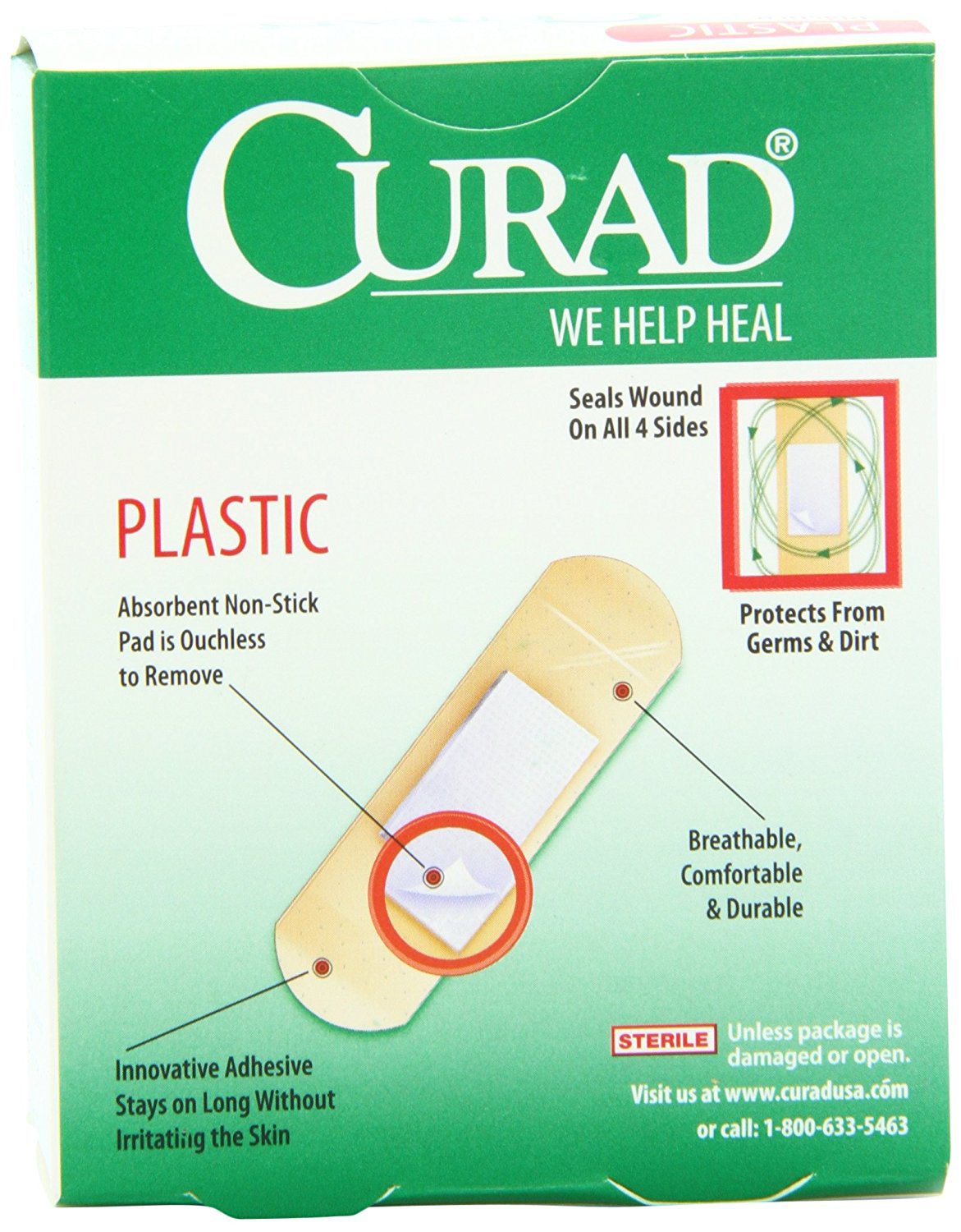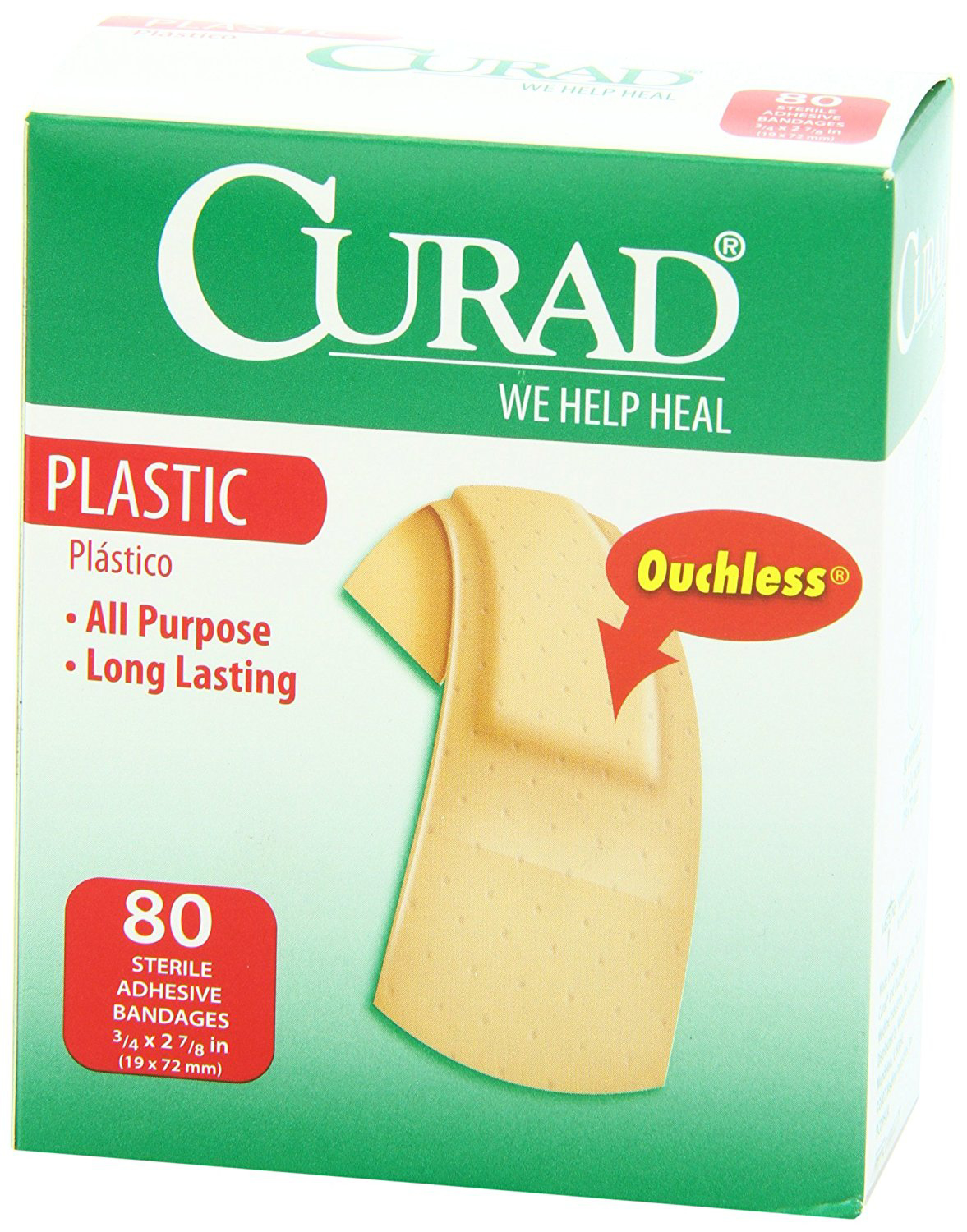 Uses: Curad Plastic Bandages have a unique adhesive to stay on all day.