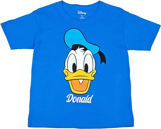 Officially licensed Disney Donald Duck Character Face Signature Blue Youth T-Shirt.
