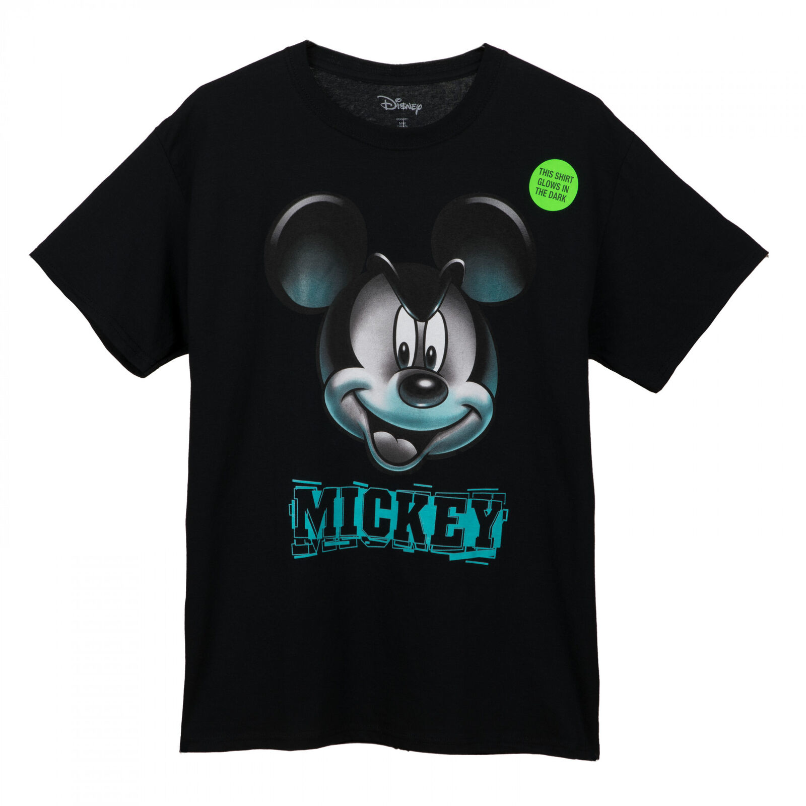 This black "Disney" Glow in the Dark T-Shirt is made from cotton and features a classic "Micky Mouse" character design that glows in the dark.