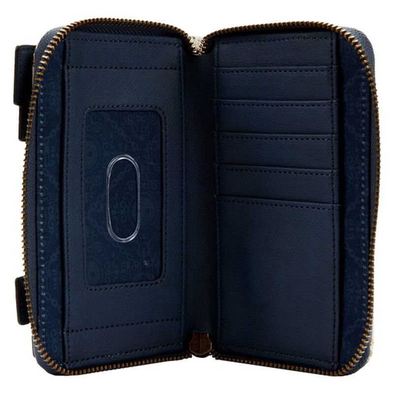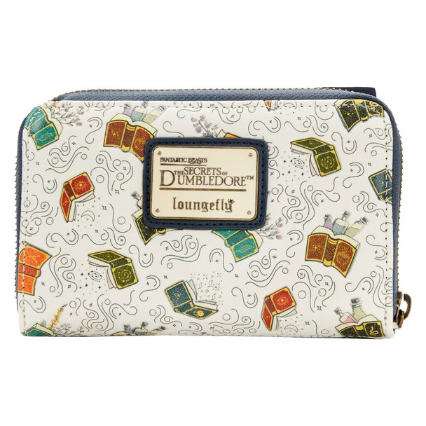 The Loungefly Fantastic Beasts Magical Books Zip Around Wallet is made of vegan leather (polyurethane). Wallet zips closed with sturdy metal hardware. Additional features include applique, debossed, and printed details. Due to the nature of all-over print designs, patterns may vary. Take note of the coordinating inside lining.