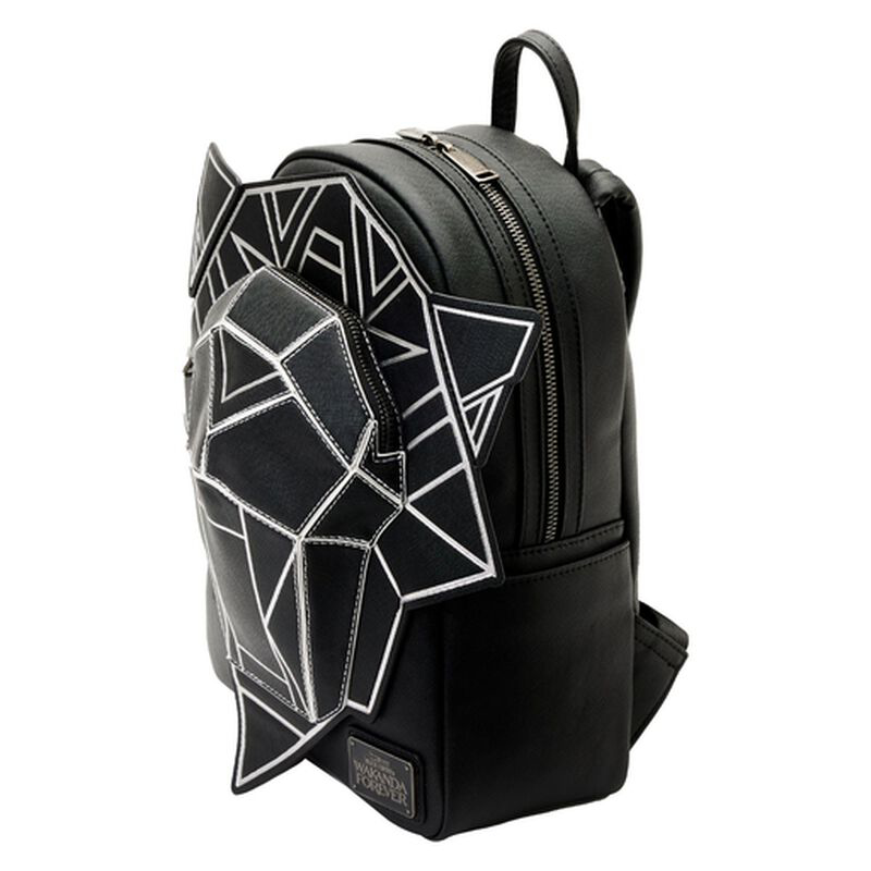The Loungefly Black Panther: Wakanda Forever Figural Mini Backpack is made of vegan leather (polyurethane). Backpack has adjustable shoulder straps and sturdy metal hardware. Additional features include applique, debossed, and printed details. Take note of the coordinating inside lining.