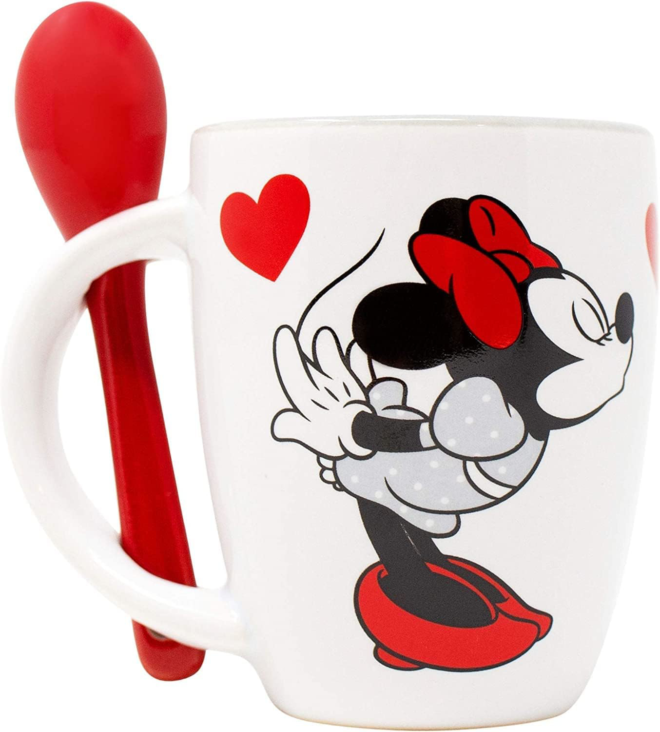 Mini size, made for espresso drinks Includes One collectible espresso mug with spoon Authentic Licensed Disney Items Mickey and Minnie Kiss Espresso Cup with Spoon Enjoy a hot or cold drink in this fun and lively ceramic Espresso mug featuring your favorite Disney characters! Great mug to keep for yourself or give as a gift. Dishwasher safe for easy care.
