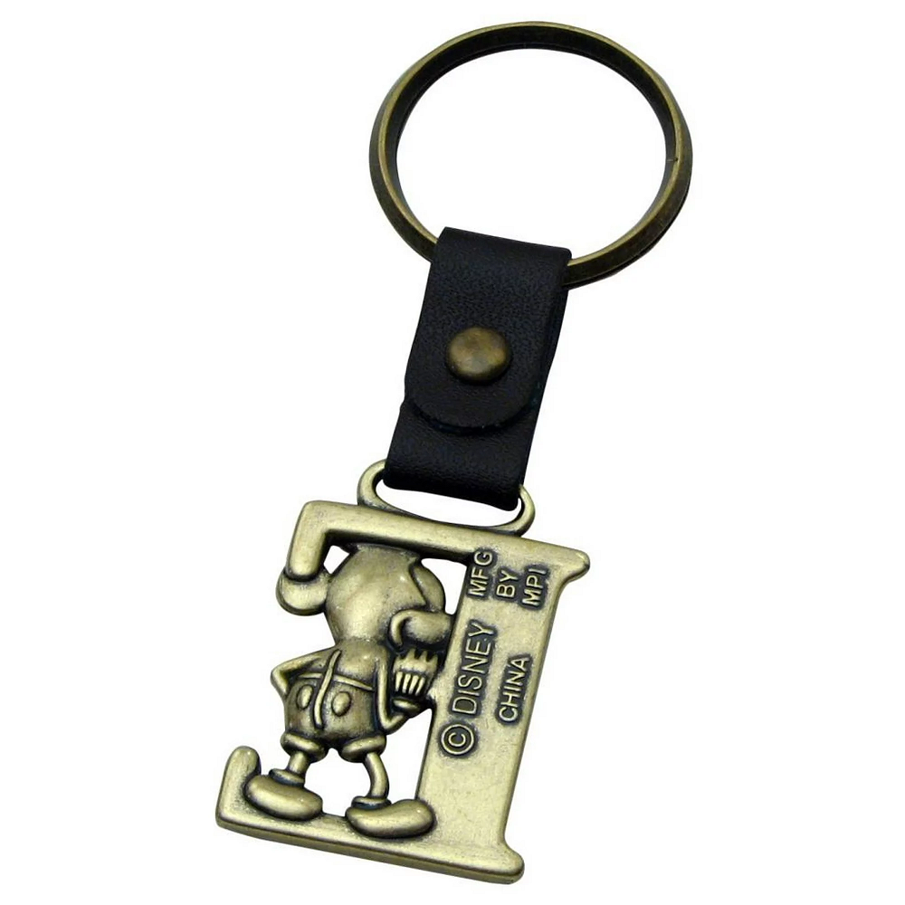 Officially Licensed Disney 3D Free-form Brass Initial key-chain with Leather Strap