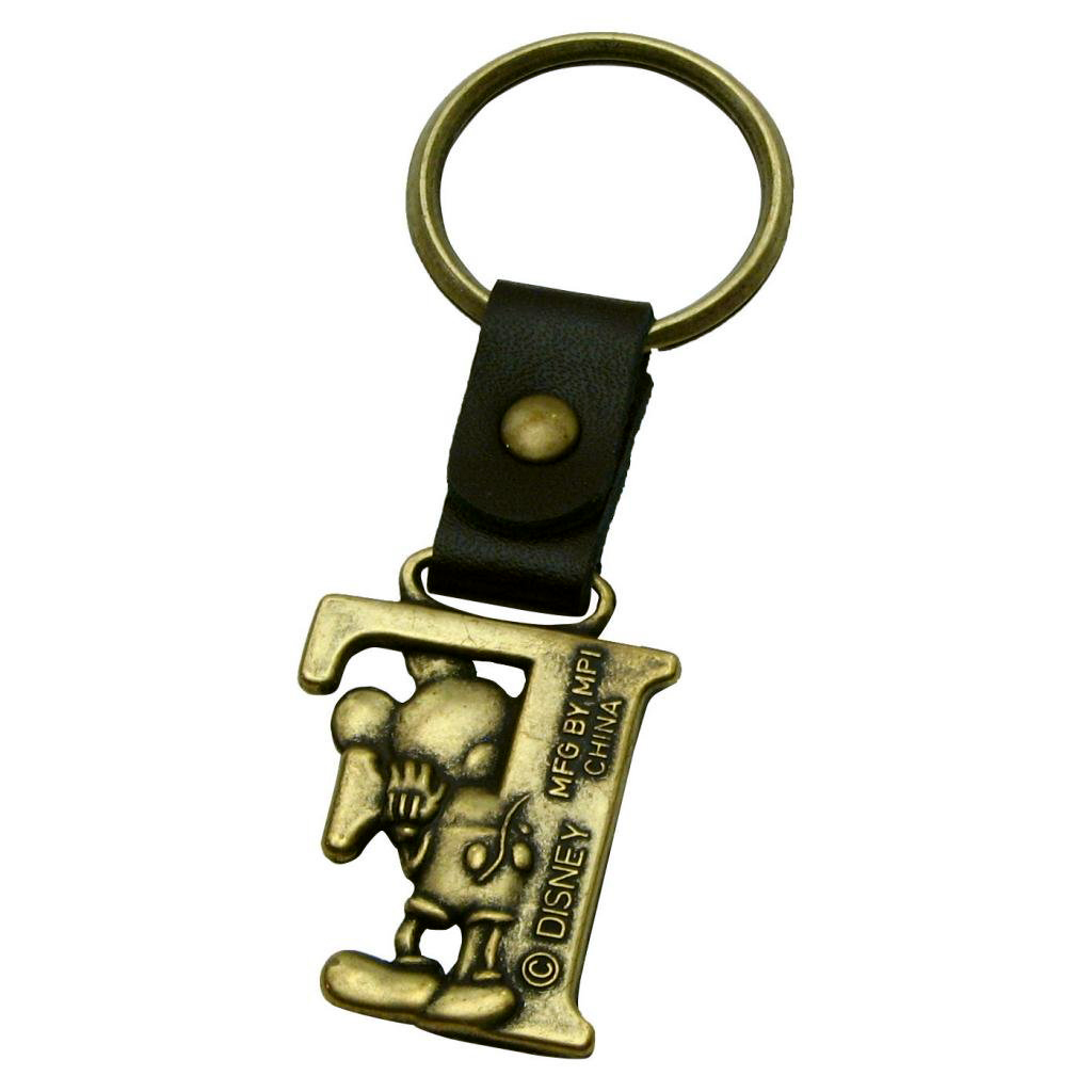 Officially Licensed Disney 3D Free-form Brass Initial key-chain with Leather Strap