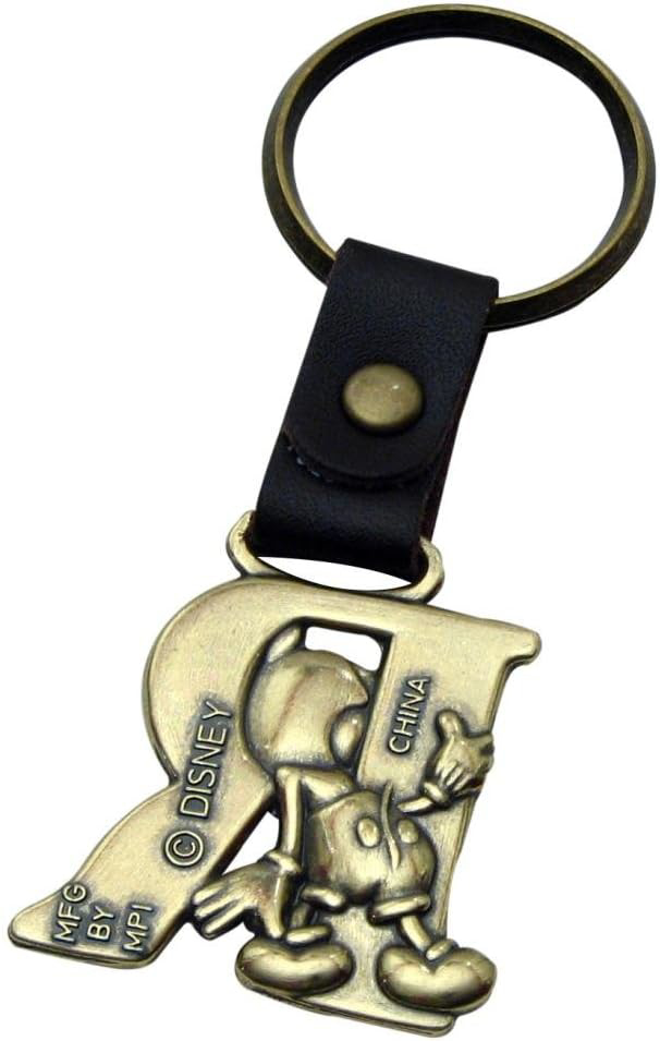 Officially Licensed Disney product Solid Brass Initial Keychain with Leather Strap