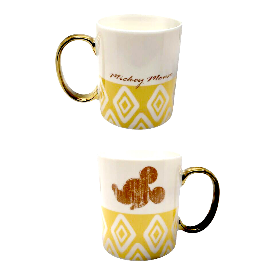 Crafted from durable ceramic, this 11 oz mug features a classic Mickey Mouse pattern adorning its surface, bringing a whimsical flair to your morning coffee or tea. The highlight of this mug is its elegant gold handle, adding a luxurious touch to its design and making it a standout addition to your kitchenware collection. With its generous capacity and ergonomic handle, this mug offers both style and functionality for your daily beverage enjoyment.