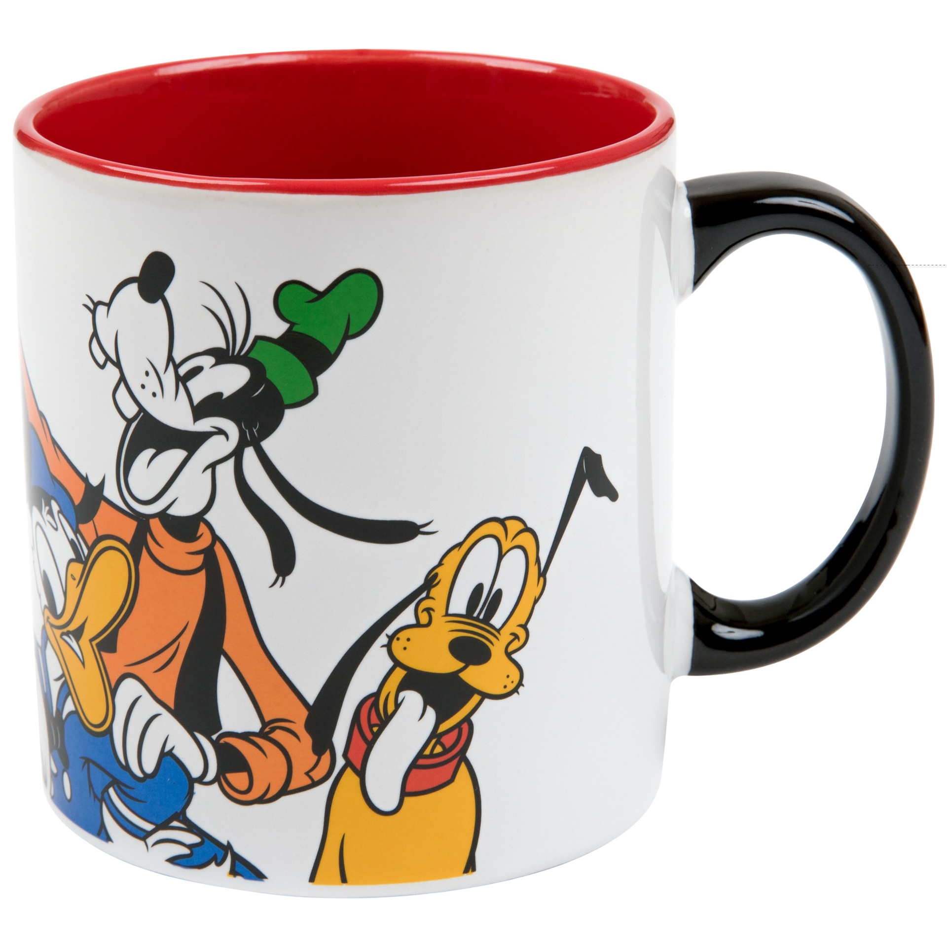 This white and red Disney Ceramic Mug features a classic Mickey Mouse and Friends character design and holds 20 ounces.