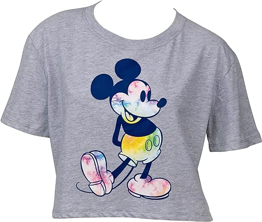 DISNEY SHIRT is a gray crop top with a tie dye mickey mouse figure TRENDY women's fashion t shirt is machine washable, making it super easy to clean after a day spent at the park DETAILS Tie Dye Mickey Mouse sits on the front and center of the Gray crop top WEAR your love for Disney proudly with this cute Mickey Mouse Tee GREAT GIFT for someone going away to Disney or a Mickey Mouse lover!