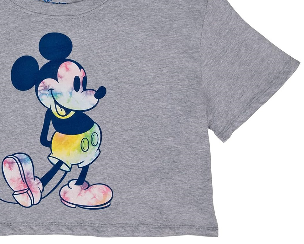 DETAILS Tie Dye Mickey Mouse sits on the front and center of the Gray crop top