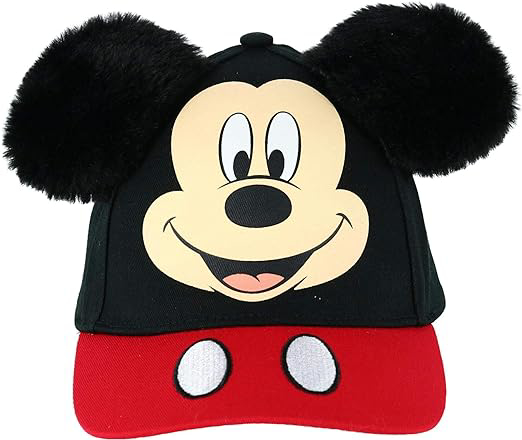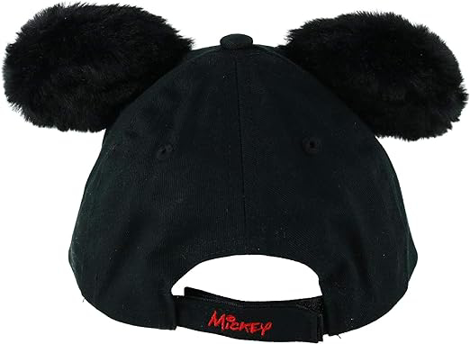 Officially licensed Disney Mickey Mouse Adjustable Baseball Cap with Plush Ears. This black and red “Disney” Adjustable Baseball Cap is made from polyester and features a fun “Mickey Mouse” character design on the front with matching fuzzy plush ears and an adjustable strap back.