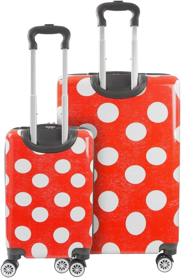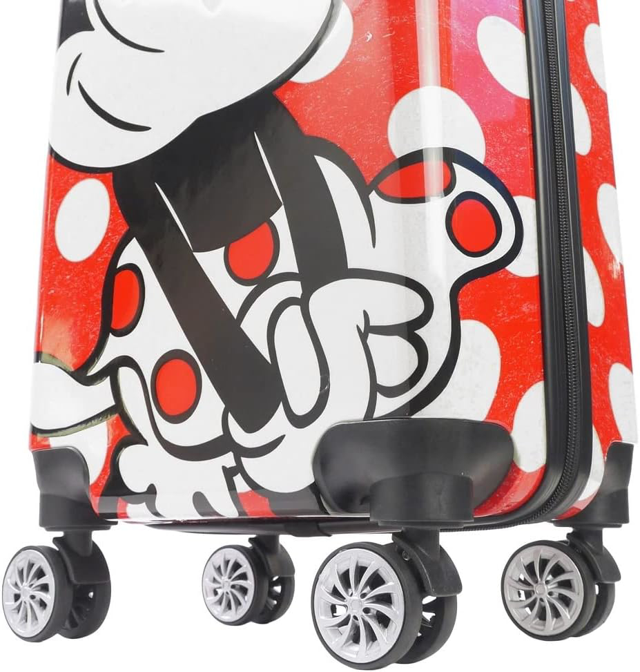 The Minnie Mouse fan will love the Adventure Awaits family vacation travel set. The 2-piece set features a large and small size spinner suitcase for all of your travel needs. They are specially designed to face each other. This luggage set will make your travels easier with eight, smooth-rolling 360-degree wheels and a retractable pull handle. The interior zippered divider and tie-down straps will assist you in packing your contents in an organized and secure manner. Dimensions: 20-inch Wheeled Carry-On Upright: 18 x 12 x 9 inches. 27-inch Wheeled Upright: 25 x 17 x 11 inches