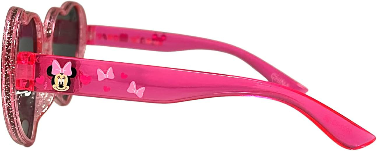 SIZE This pair of sunglasses are measured in youth sizes. While they may not be a great accessory for Mom on the next Disney trip, they're certainly great for the special girl that gets to go. MATERIAL Made from heavy duty plastic so they are durable enough to withstand the wear and tear of a hectic vacation. MINNIE MOUSE Everyone's favorite mouse is back in action! These adorable Minnie heart-shaped sunglasses are the perfect summer accessory for the most stylish girls. DISNEY Did you recently just take a trip to Disney and couldn't find the perfect souvenir? Or are you planning your Disney vacation and need adorable accessories for your daughter? These sunglasses are perfect for both of those situations! GIFT These sunglasses make the perfect gift for any girl who loves Minnie Mouse. Whether they're for your daughter, granddaughter, niece, or other loved one, she'll think you're the coolest person around for getting her these sunglasses!