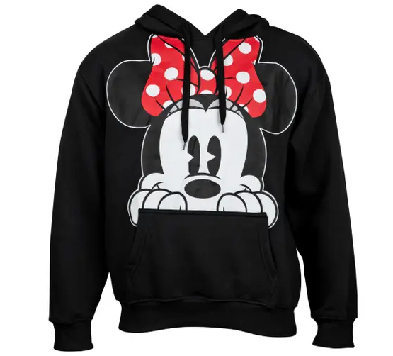 Officially licensed Disney Minnie Mouse Peeking Head Hoodie. This black “Disney” Hoodie is made from cotton and features a classic “Minnie Mouse” Peeking Head character design.