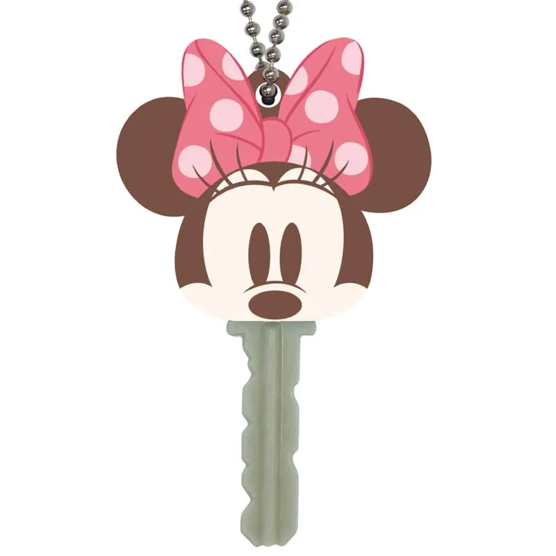 Crafted from soft-touch PVC, this key holder showcases Minnie's iconic bow adorned with classic polka dots, capturing the timeless charm of everyone's favorite mouse. Designed to fit over most standard keys, it offers protection against scratches and damage while infusing your keys with playful style. The durable construction ensures long-lasting use for both your car and home keys. Complete with a small metal chain, this officially licensed Disney product is a must-have accessory for any Minnie Mouse enthusiast.