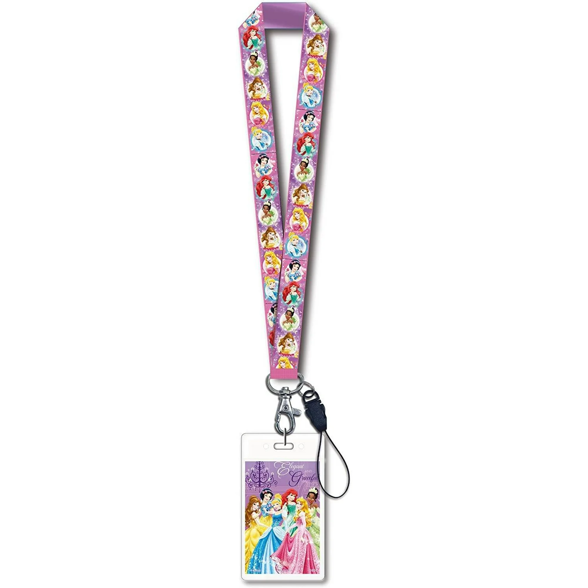 Made from polyester, this cute lanyard features a "Disney Princess" print and comes with matching ID badge holder and charm. The fantasy is alive with this Disney Princess lanyard with card holder. Convenient for holding your information with Disney style. Nice souvenir for Princess fans.
