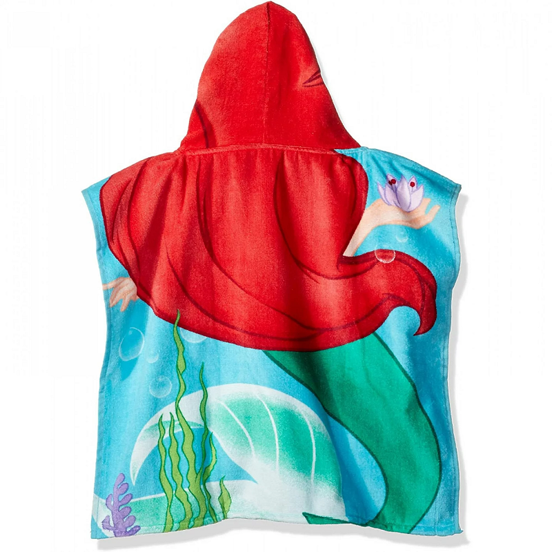 Officially licensed Disney Princess Little Mermaid Ariel Youth Hooded Poncho Towel. Made from a super soft and absorbent cotton towel and features classic Ariel character design. Measures 22 inches x 51 inches.