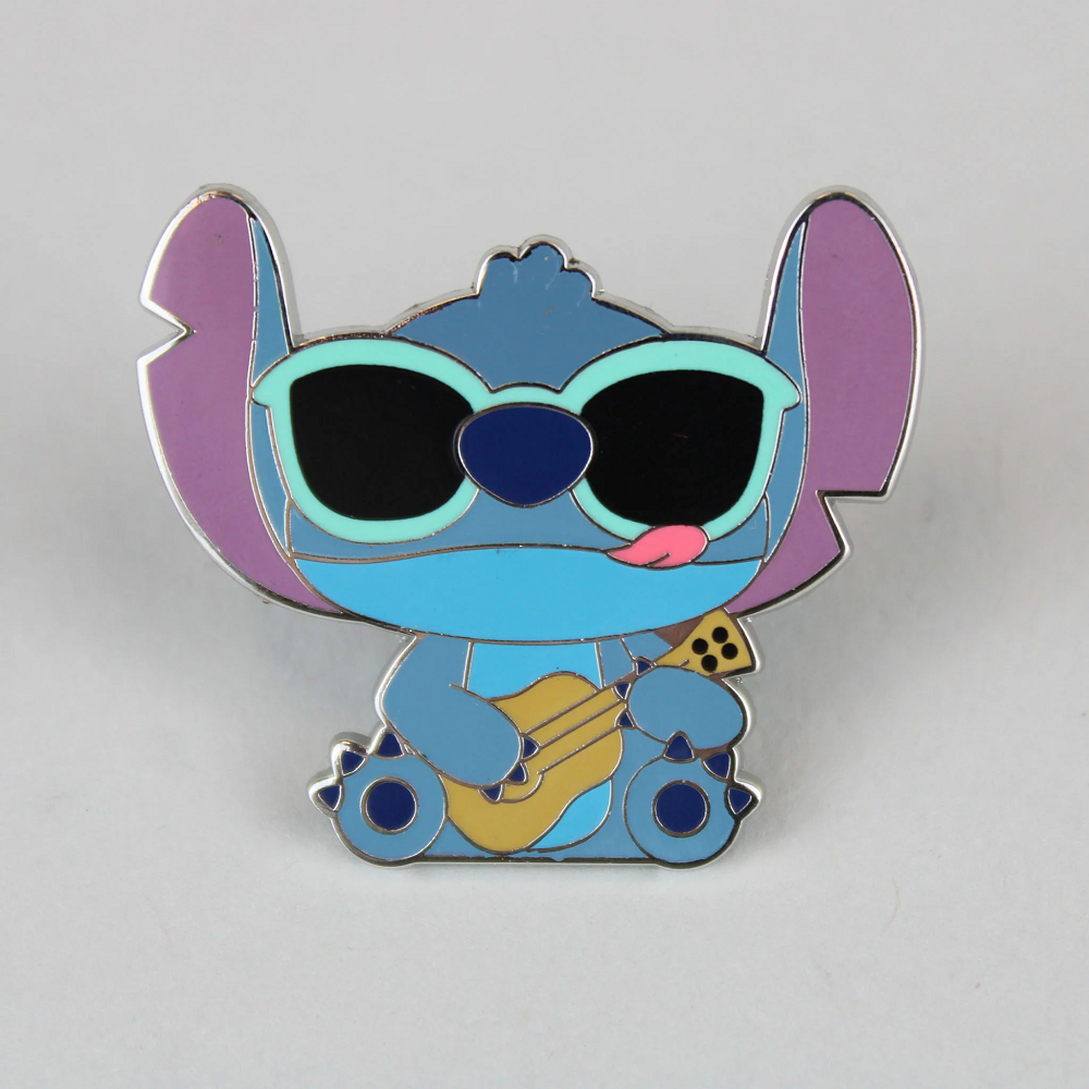 Bring some Disney magic to your wardrobe with this charming enamel lapel pin featuring Stitch from Lilo & Stitch playing the ukulele guitar. This collectible pin is crafted with high-quality enamel and metal, capturing the playful essence of everyone's favorite blue alien. Whether you're a fan of Disney or simply love Stitch, this lapel pin is a must-have accessory for any occasion. Pin it to your jacket, backpack, hat, or anywhere else to showcase your love for Stitch and music.