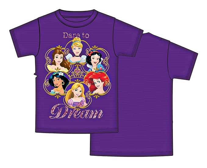 Material - 100% Cotton - Has Youth Girl's Sizing - Features the Text "Dare to Dream" - Shirt Has Cinderella, Snow White, Ariel, Rapunzel, Jasmine, and Belle on It - This is Perfect for Wearing on a Disney Trip