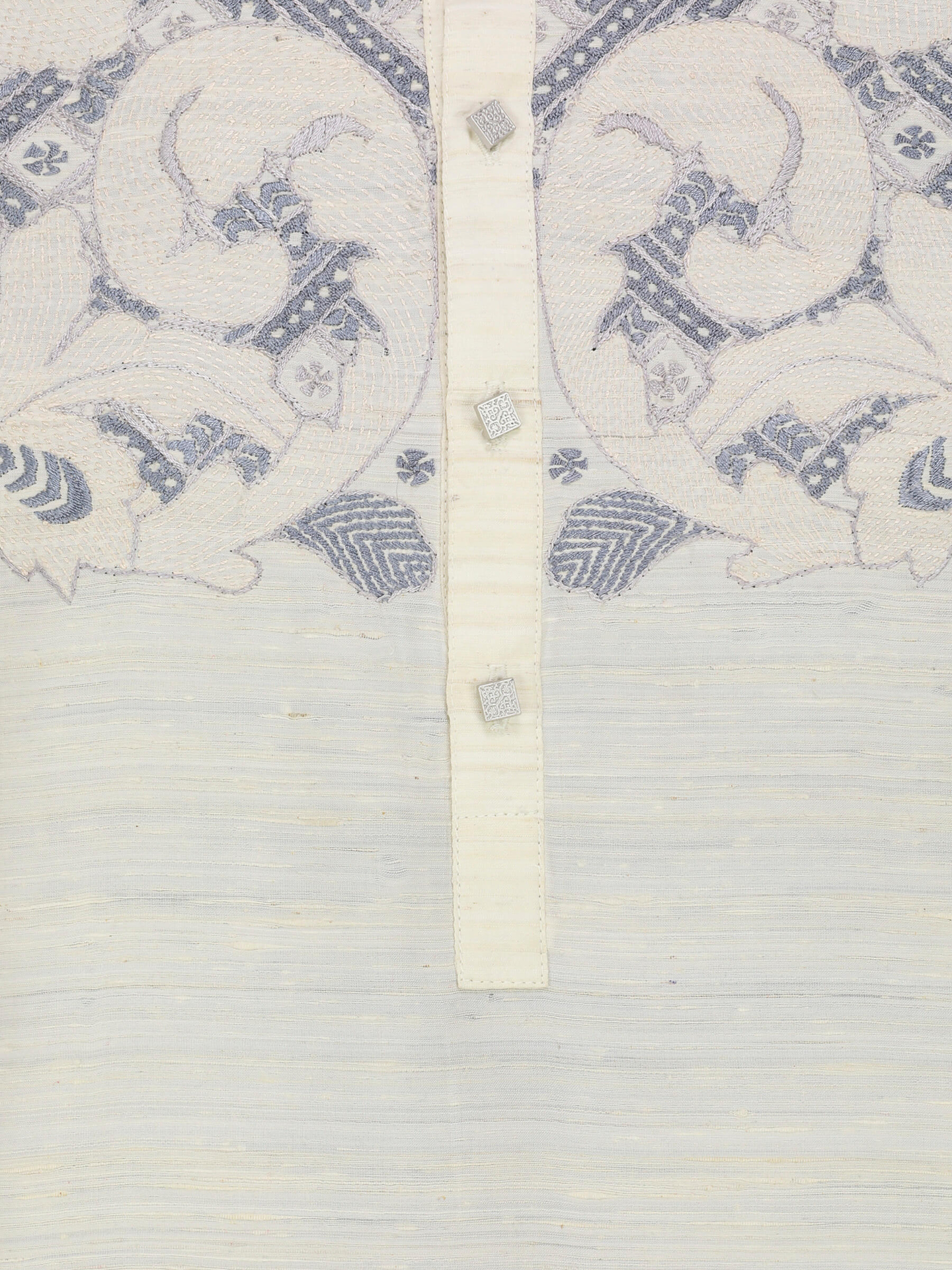 Ecru endi silk panjabi with blue grey embroidery. this panjabi useing very comfortable. made in bangladesh