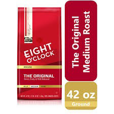Eight O'Clock Original Ground Coffee, Medium Roast is ideal for the everyday coffee drinker and anyone on the go. It's convenient and quick, removing the at-home grinding process where you can grind too much or too little, too fine or too coarse. With Eight O'Clock Coffee grounds, it's simple pour coffee into a drip coffee machine, reusable pod, French press or percolator and go.