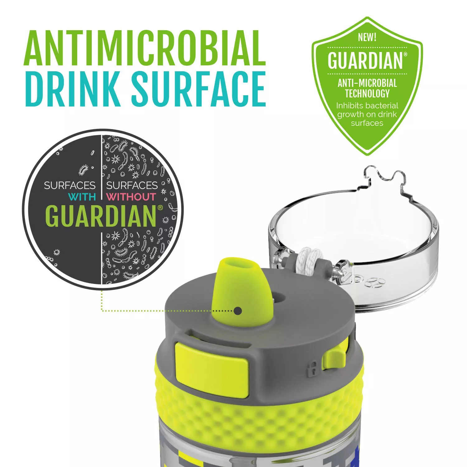 Ello's Stratus Tritan Plastic Kids Water Bottle is designed with a silicone accent band that makes it easy to remove the lid for filling and cleaning. A leak-proof locking flip lid with silicone soft straw is designed for on-the-go use. Stratus's XL push button and silicone soft carry loop make it easy for little hands to stay hydrated on-the-go. This bottle is BPA/BPS-free and dishwasher safe.