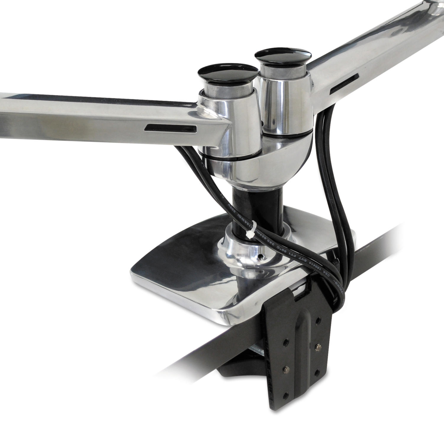 This dual side-by-side arm easily accommodates two LCD screens, perfectly aligning them on a sleek, streamlined base. Create a fully adjustable side-by-side configuration, lifting both screens up to where they’re easier to see, freeing valuable workspace. It provides unparalleled range of motion using Constant Force patented lift-and-pivot motion technology featuring height adjustment, extension/retraction motion and tilt of LCDs as workflow requires and an integrated landscape to portrait mode for one or both LCDs.