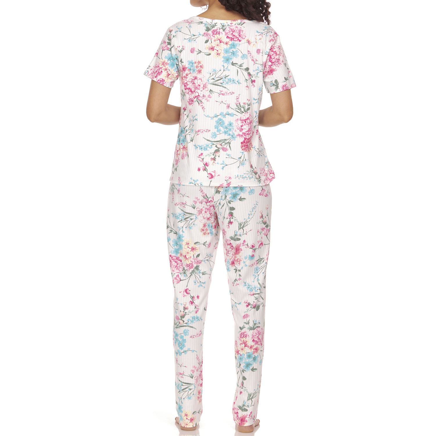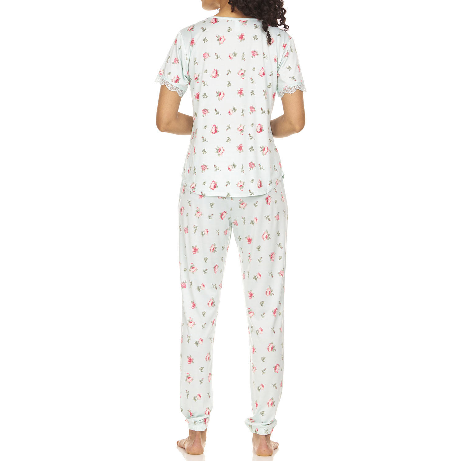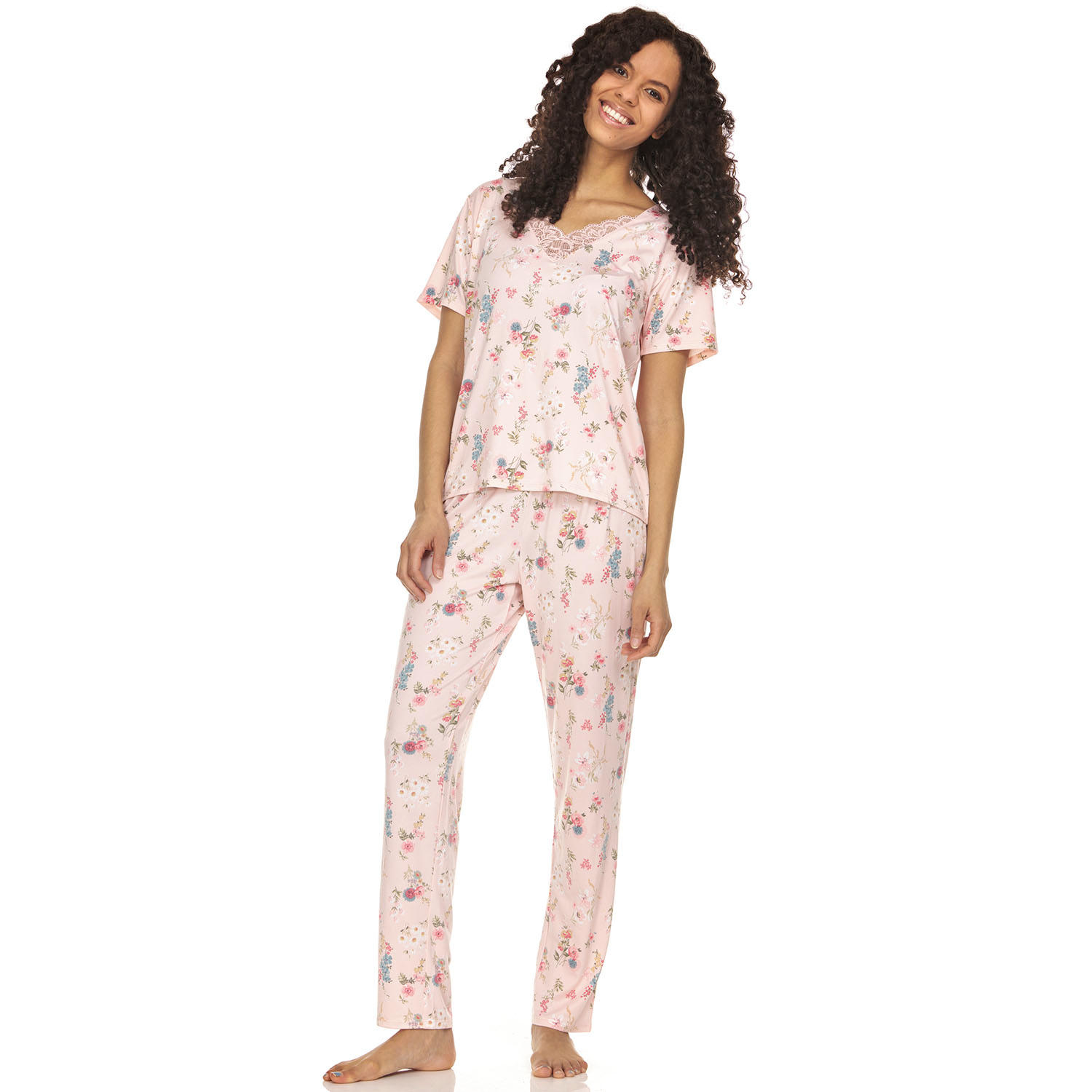 2 Piece PJ set with short sleeve top, long pants, luxurious super soft comfy microfiber, super comfy fit, exclusive prints, V-Neck top with lace or crew neck top AMAZING VALUE!