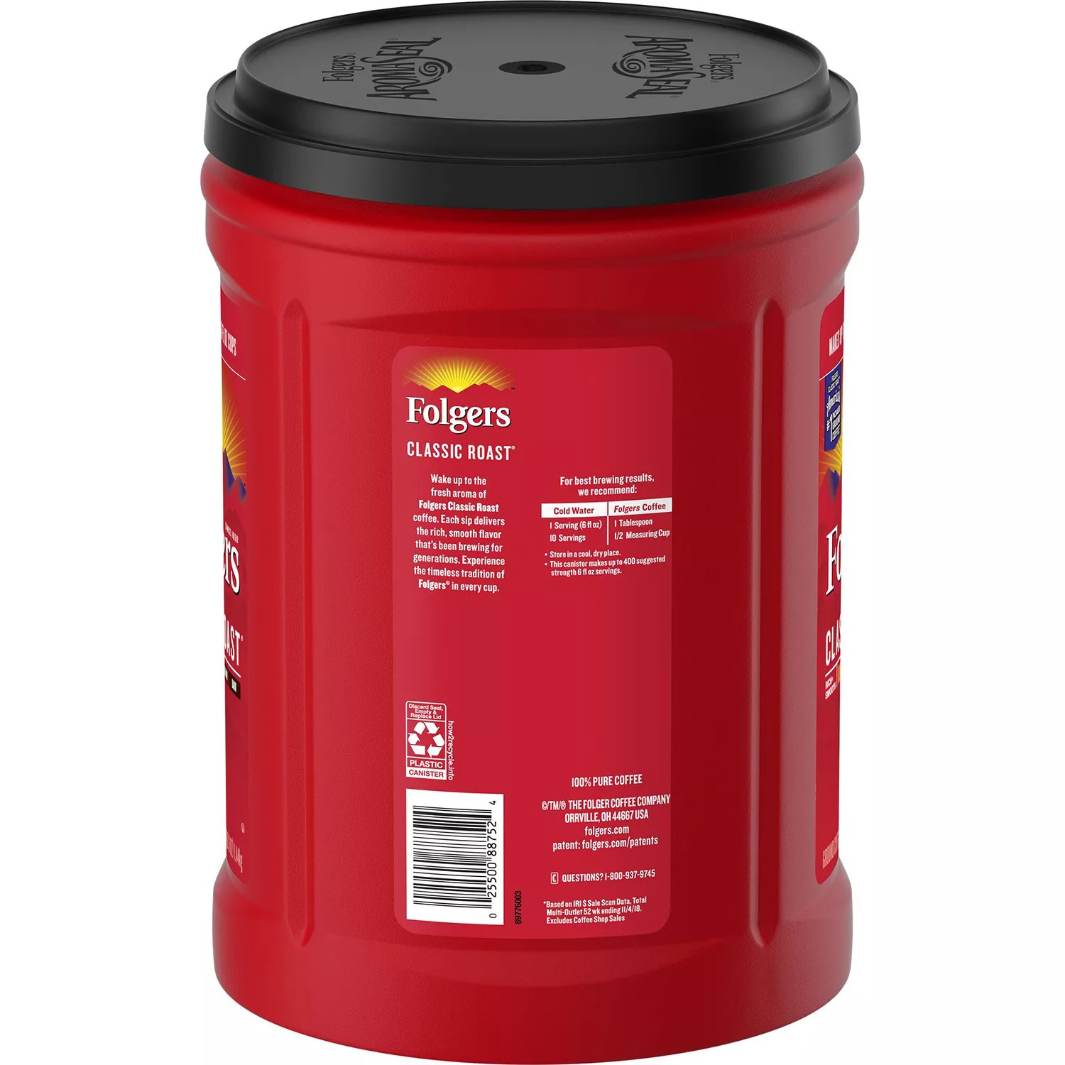 Folgers Classic Roast Ground Coffee is versatile, it can be enjoyed a number of ways without compromising its exceptional taste. The medium roast is popular with coffee lovers everywhere thanks to the consistency of its flavor. Classic Roast can be enjoyed with milk, creamer or non-dairy options, along with sugar, spices or flavored syrups, a combination, or black and fresh straight out of the pot. No matter how you take your coffee, Folgers Classic Roast Ground Coffee can make your mornings more memorable.