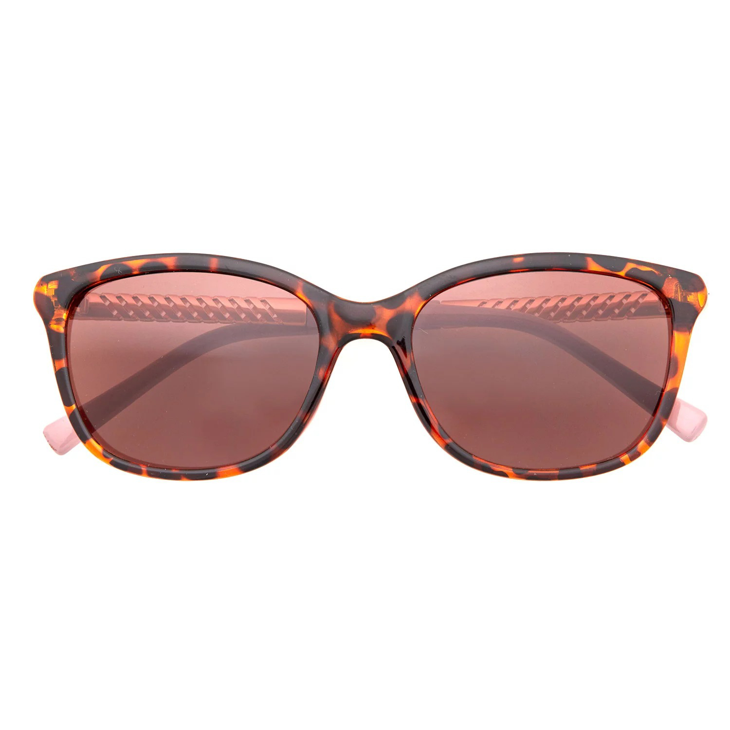 Feminine and functional! Our flattering modern soft square-shaped tortoise frame will flatter all face shapes and fashion styles. Sculptural rose gold temples with blush accents add radiance and shine. Polarized lenses effectively elminiate reflected glare providing exceptional visual clarity.