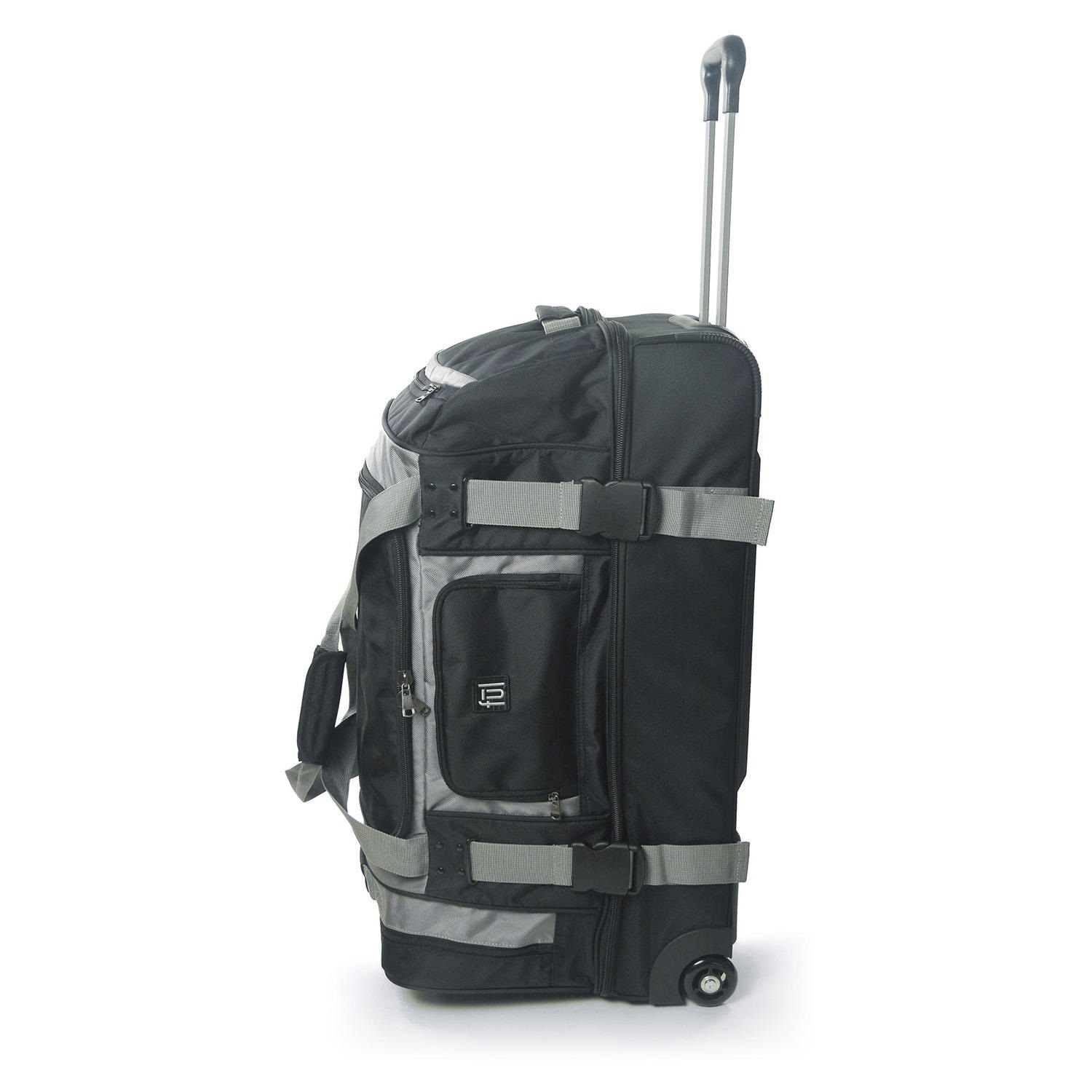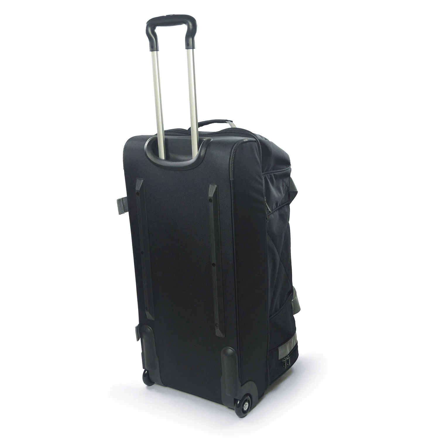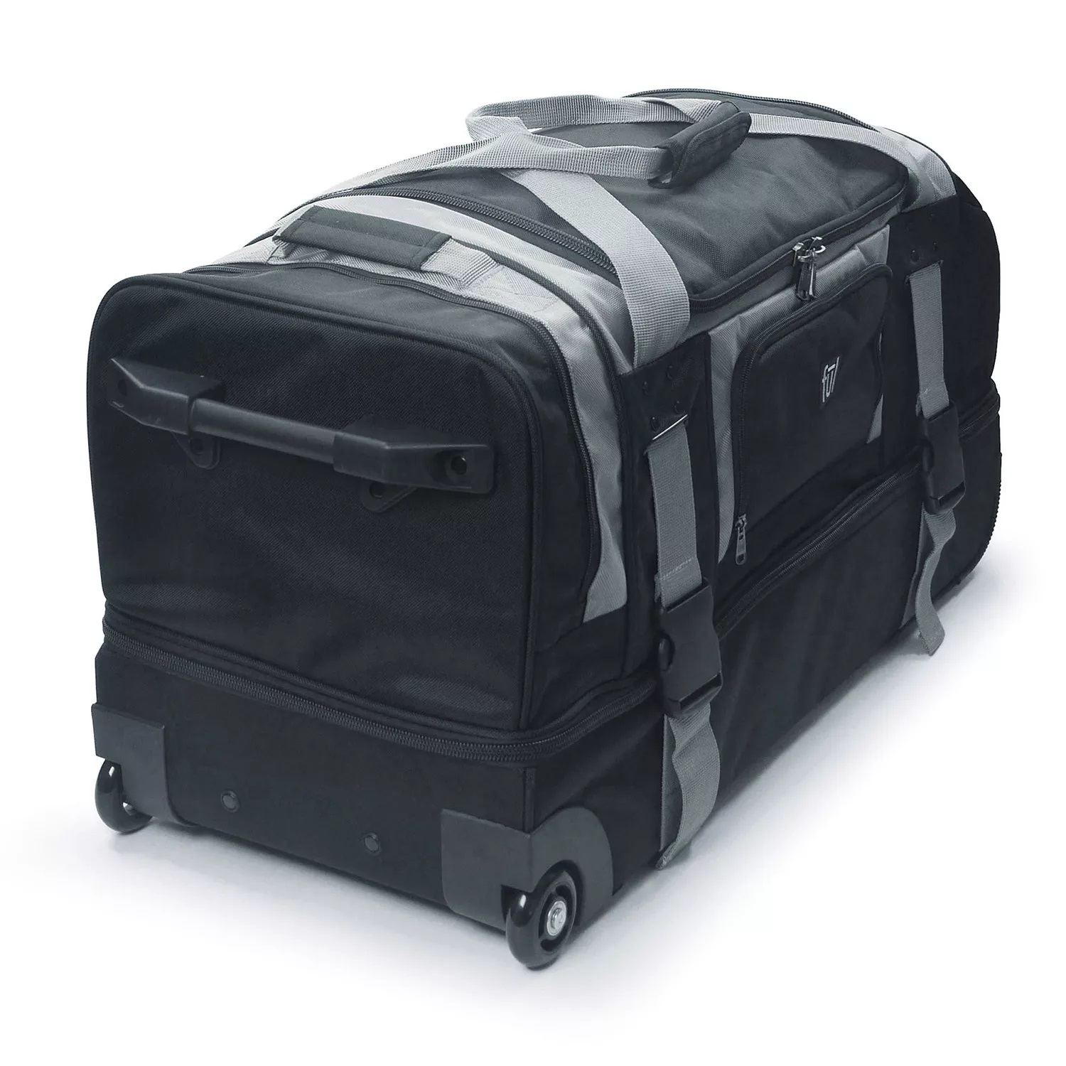 For long trips, there is no duffel like the FUL Rig 30in Rolling Duffel Bag. It is mobile on corner-mounted wheels for smooth and easy wheeling through airports and includes a single-Stage retractable handle. It offers split-level storage that lets you organize your essentials with ease, or you can have one large storage compartment with a pass-through zipper panel. The upper compartment includes a zip pocket on each side and the front. A full-length bottom compartment is ideal for large or bulky clothing items and includes a compression strap to secure contents. Adjustable exterior compression straps help compress your contents and keep them secure. Finally, front and rear grab handles make for quick and easy loading into overhead storage bins or trunks.