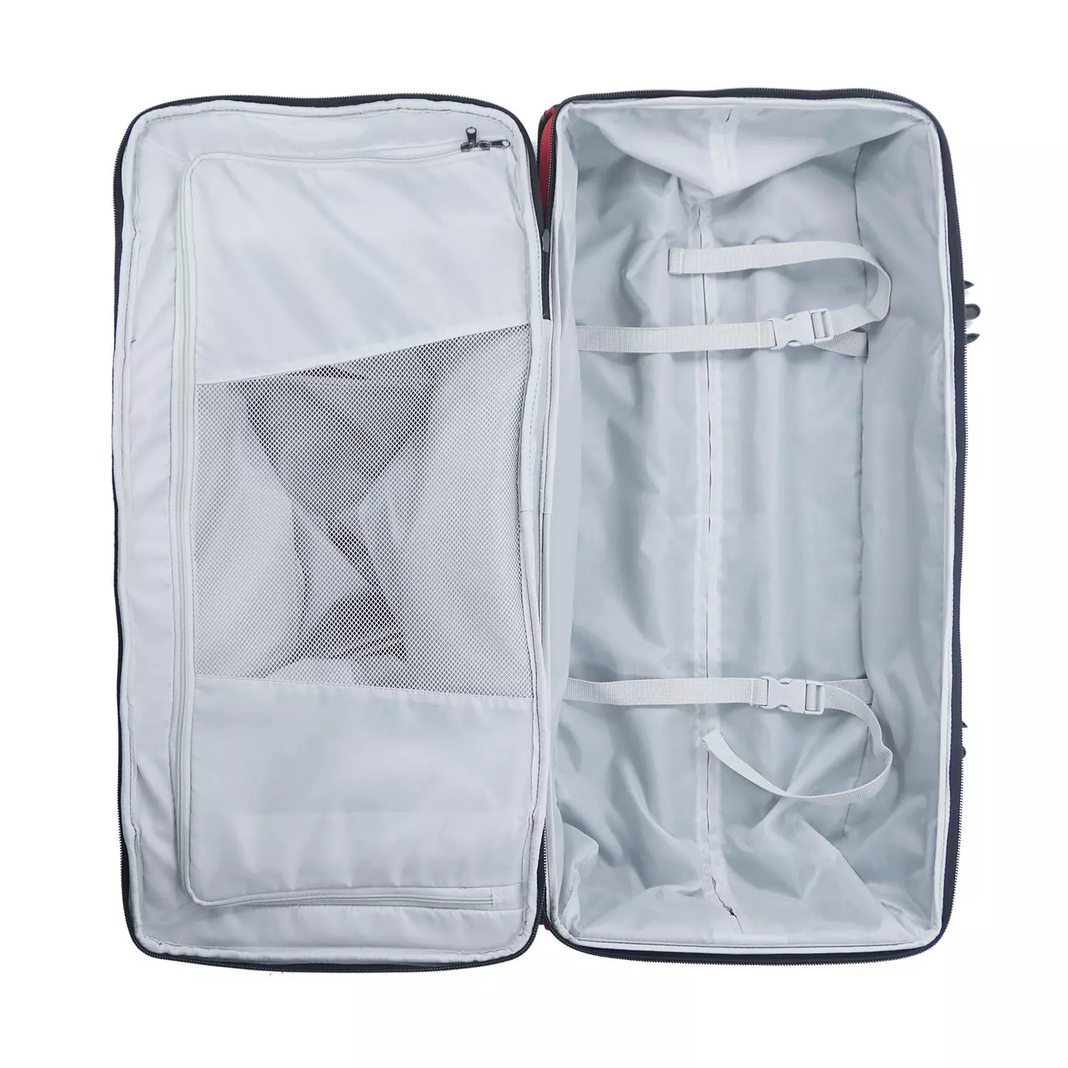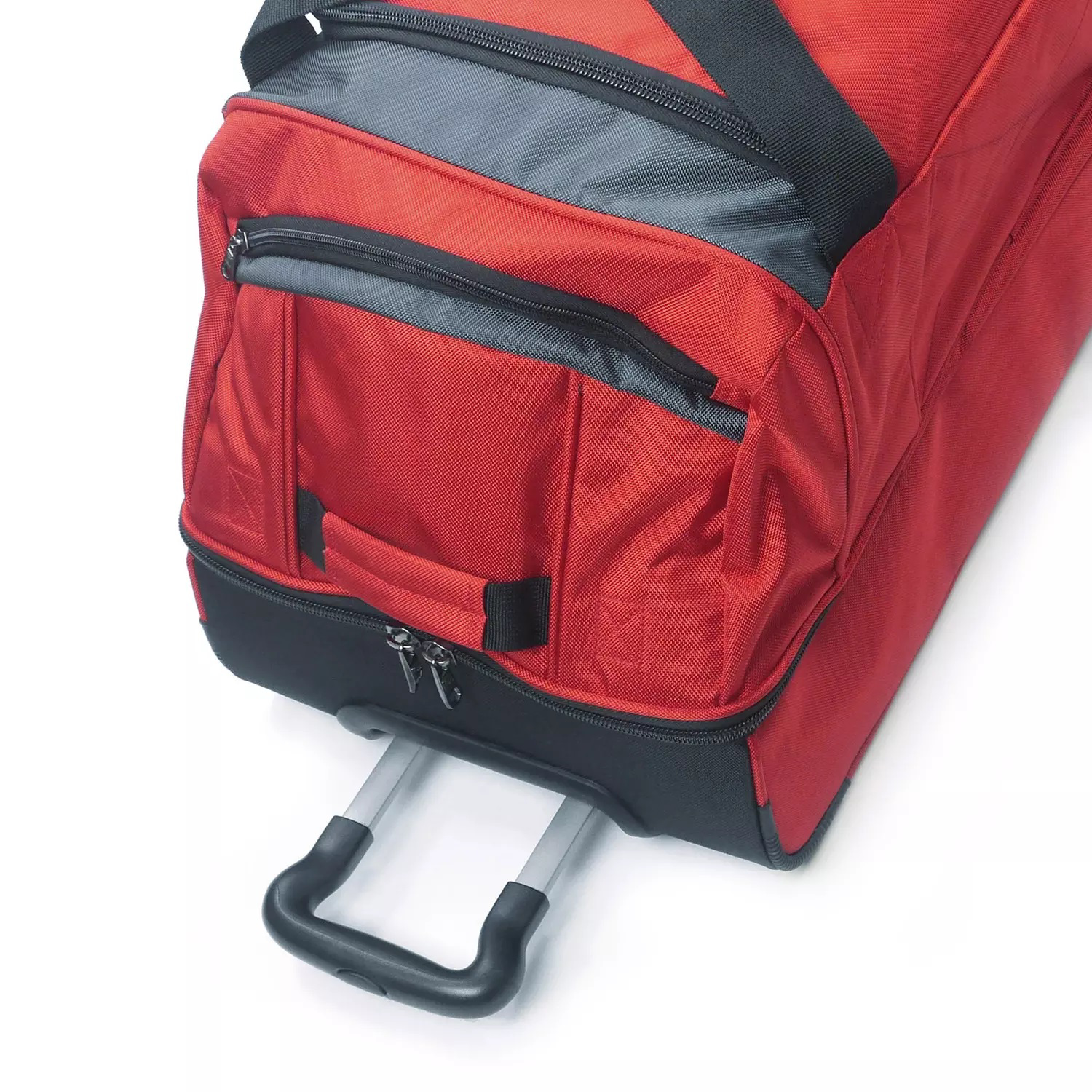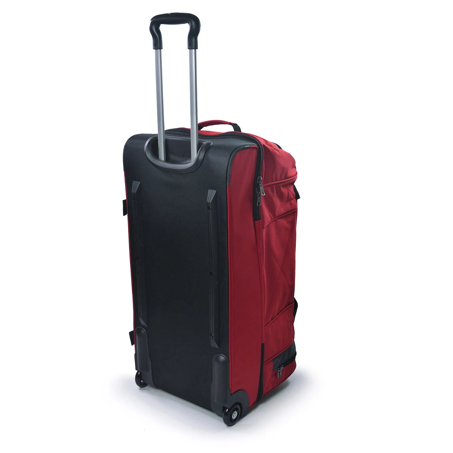 For long trips, there is no duffel like the FUL Rig 30in Rolling Duffel Bag. It is mobile on corner-mounted wheels for smooth and easy wheeling through airports and includes a single-Stage retractable handle. It offers split-level storage that lets you organize your essentials with ease, or you can have one large storage compartment with a pass-through zipper panel. The upper compartment includes a zip pocket on each side and the front. A full-length bottom compartment is ideal for large or bulky clothing items and includes a compression strap to secure contents. Adjustable exterior compression straps help compress your contents and keep them secure. Finally, front and rear grab handles make for quick and easy loading into overhead storage bins or trunks.